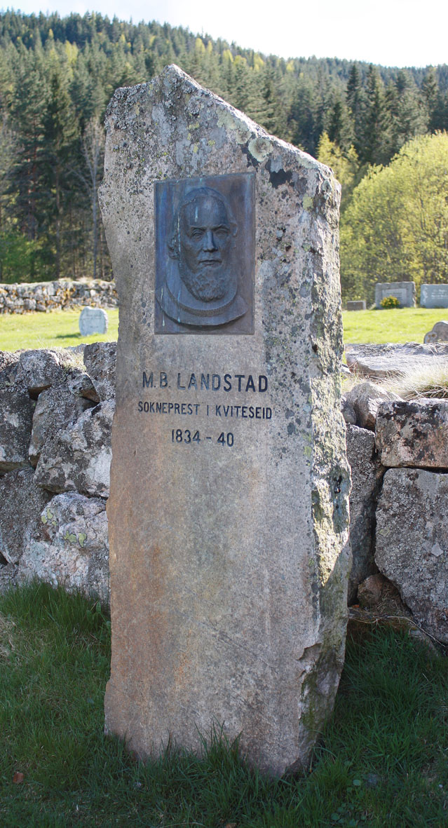 Relieff av Magnus Brostrup Landstad (1802-1880) Prest og folkeminnesamlar Sokneprest i Hvidesø (Kviteseid) frå 1834 til 1840 Avduka 19.07.1992